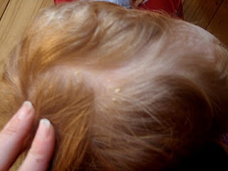 Welcome to my world. First of all, we’re literally seeing our son grow out of his babyhood. There are remnants of what I guess is cradle cap that are only just now flaking off; as E’s hair is finally coming in en masse, those tough bits of skin are being pushed away from the rest of his head.